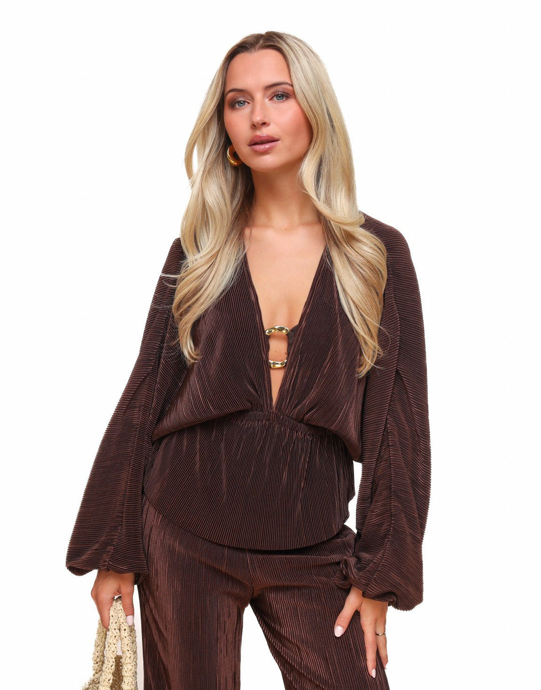 Bruine Plisse V-hals - Top