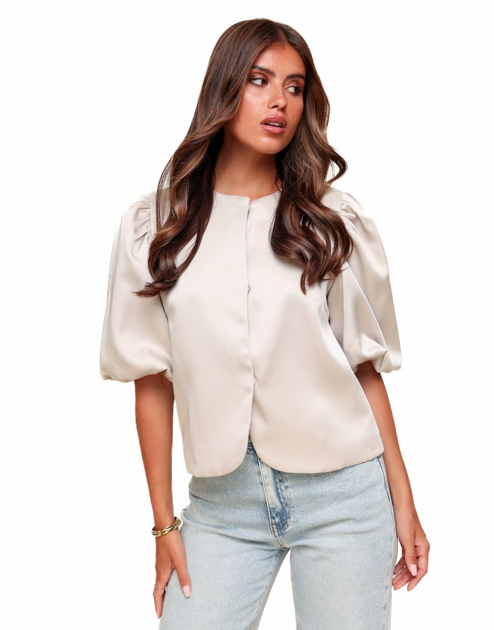 Taupe Satin Puff Sleeves - Top