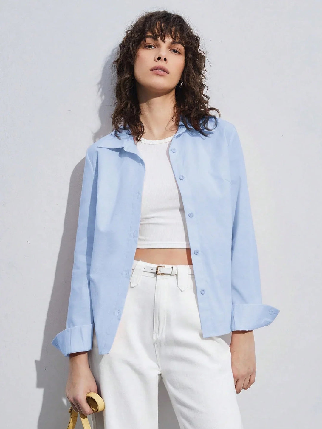 Turndown Collar Long Sleeve Shirt Casual Fit Everyday Wear