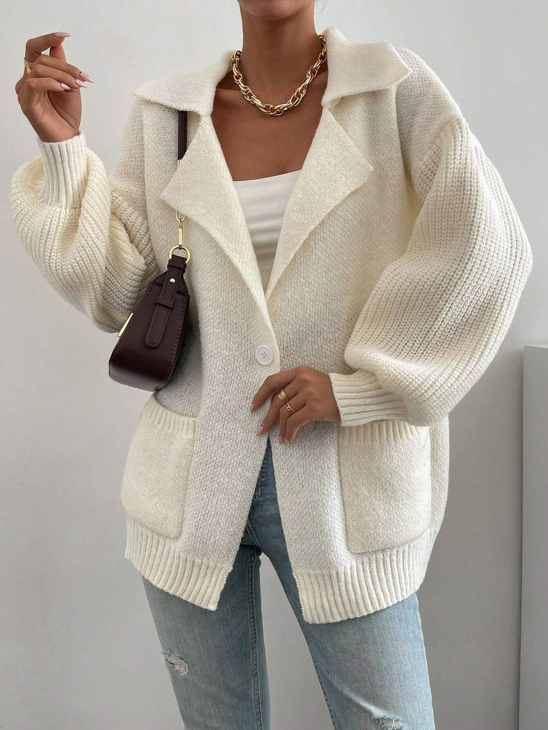 Plus Size Cardigan Apricot Long Sleeve Single Breasted Cozy