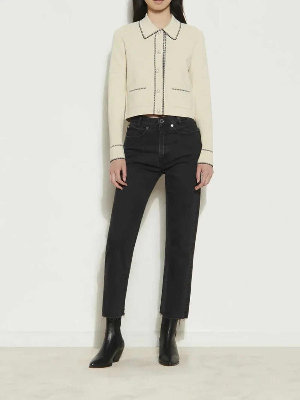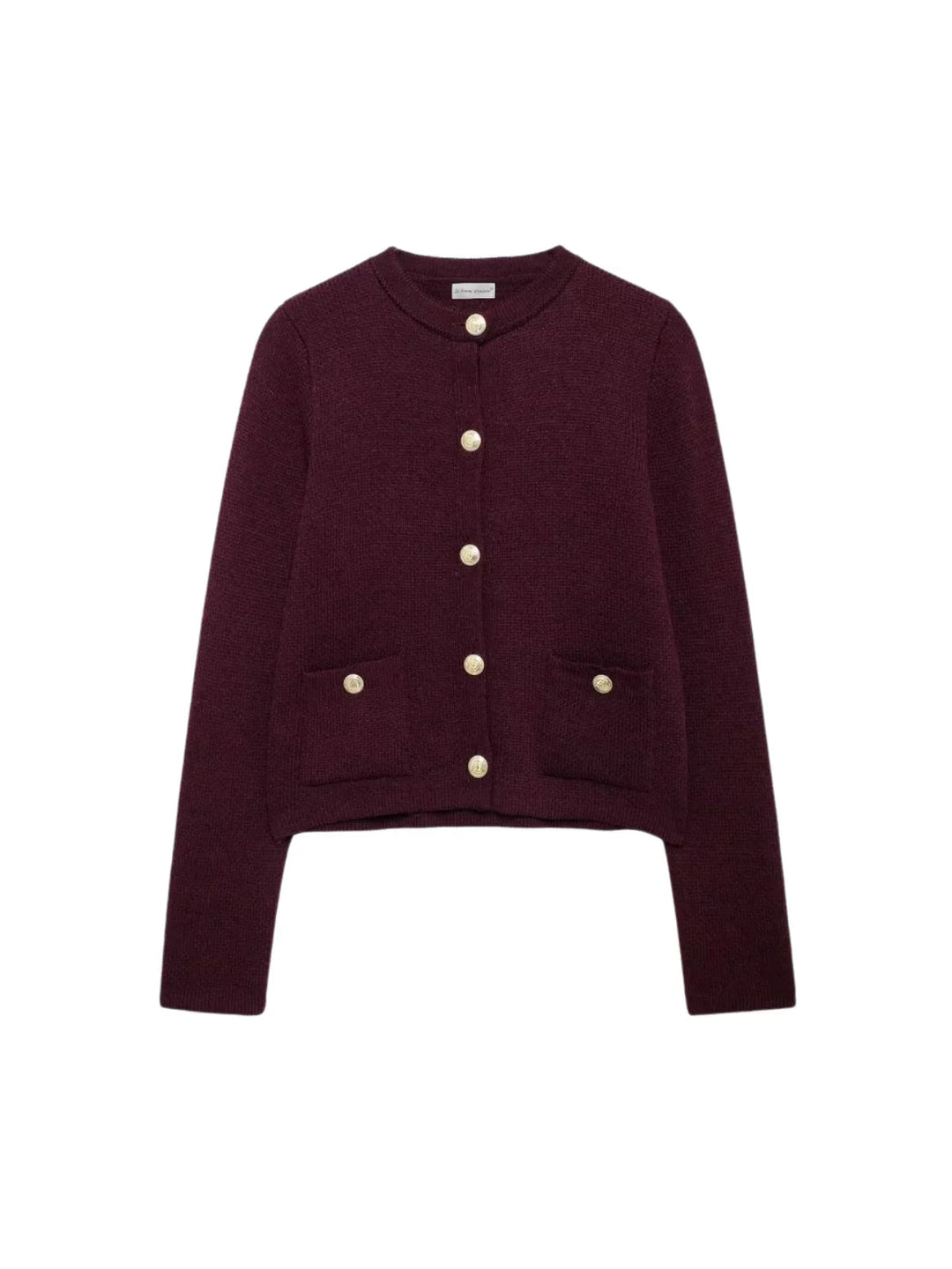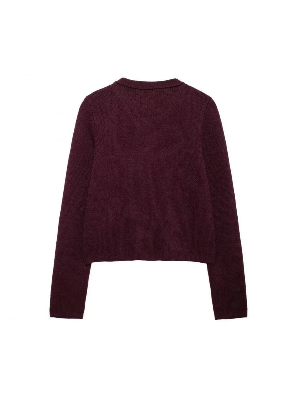 Exquisite Pearl Button Check Lace Knitted Cardigan