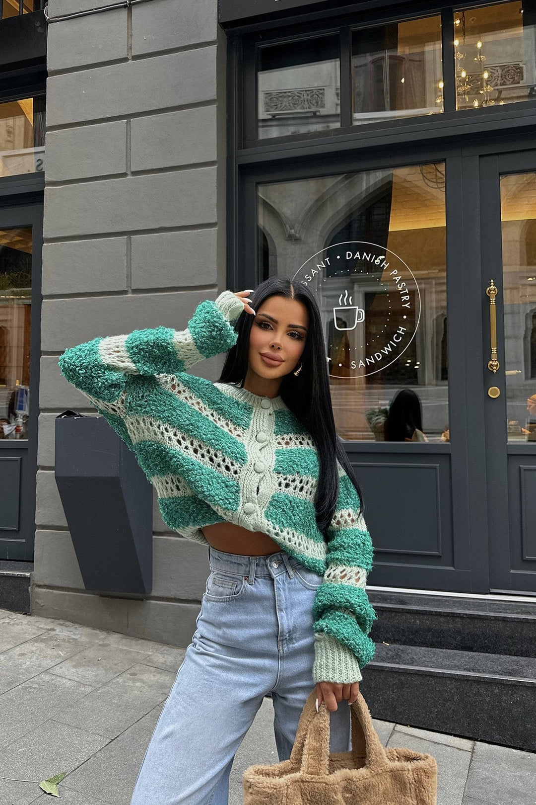 Olive Coast Striped Cardigan