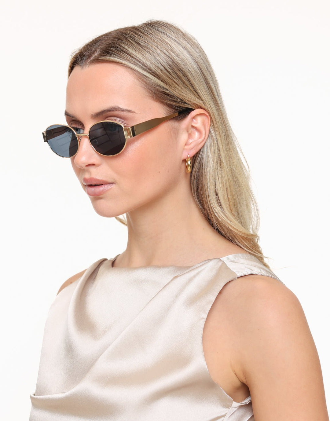 Black Oval Gold Frame - Sunglasses