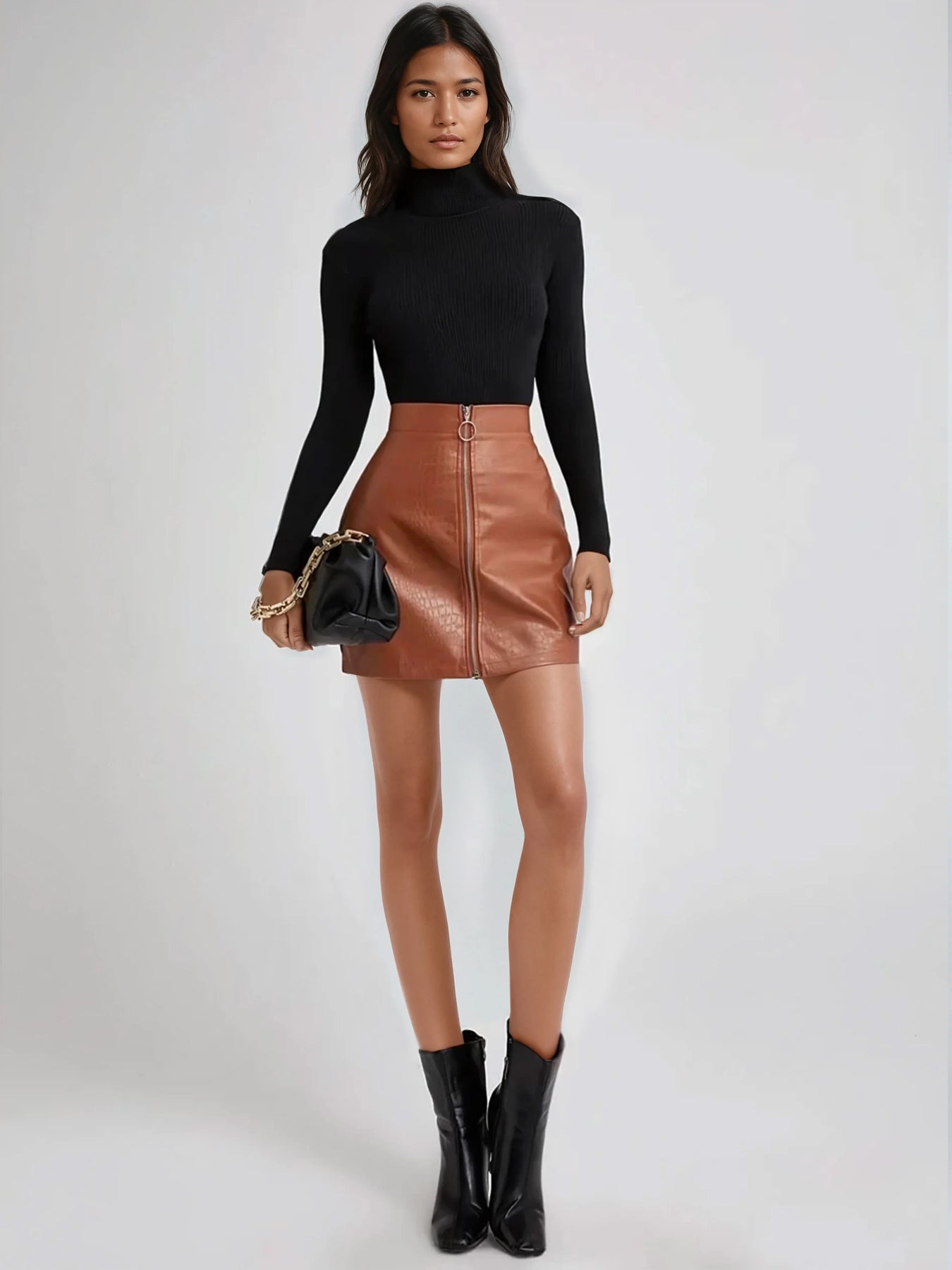 Beige ribbed knit turtleneck sweater with a clean, timeless silhouette. The timeless elegance and quiet luxury of the knit are elevated by a high neckline and a minimal, regular-hem design. The slim fit offers a refined line, while the rib-knit texture adds subtle sophistication. Ideal for late fall temperatures (10-17°C/50-63°F). This piece embodies old money style and pairs effortlessly with skirts, tailored pants, or denim to create chic outfits and minimalist fashion moments.