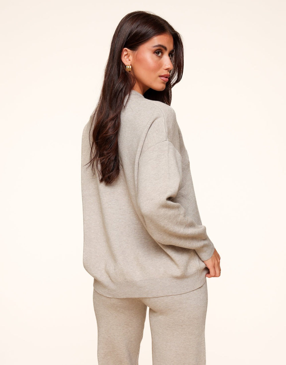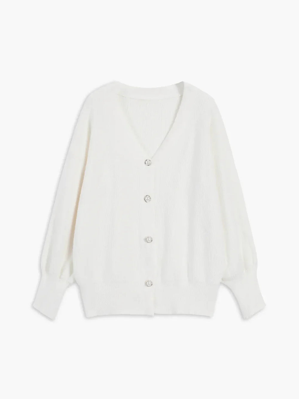 Solid Color Long-sleeved Pearl Oversized Cardigan