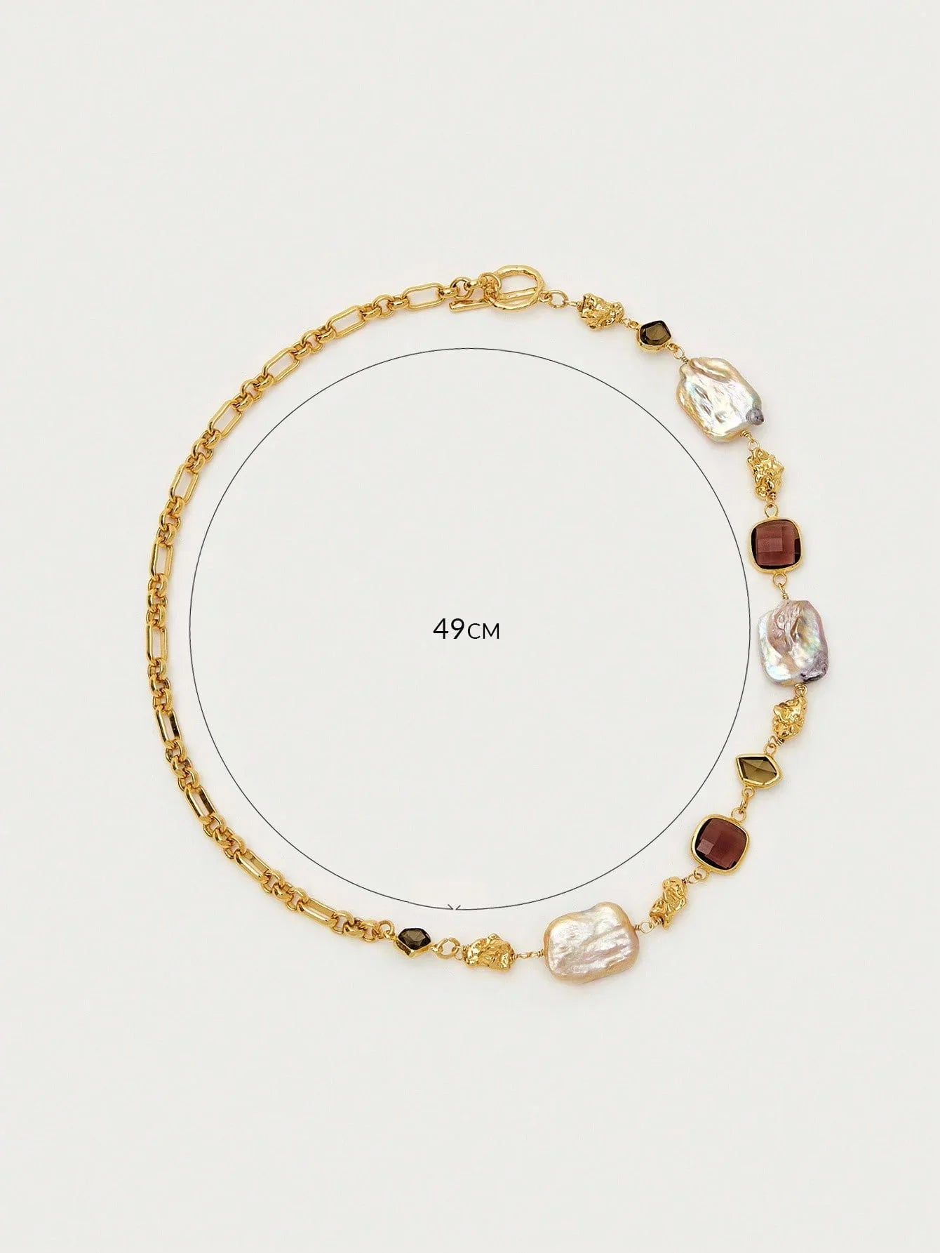Design: The Asymmetrical Faux Pearl Necklace With Gold Finish Glam features a one-piece, sculptural silhouette that juxtaposes luminous faux pearls with a warm yellow-gold finish for a modern, elegant statement. Its asymmetrical arrangement and graduated pearl sizing create graceful movement and visual intrigue, designed to drape beautifully at the collarbone and frame the neckline with refined glamour.