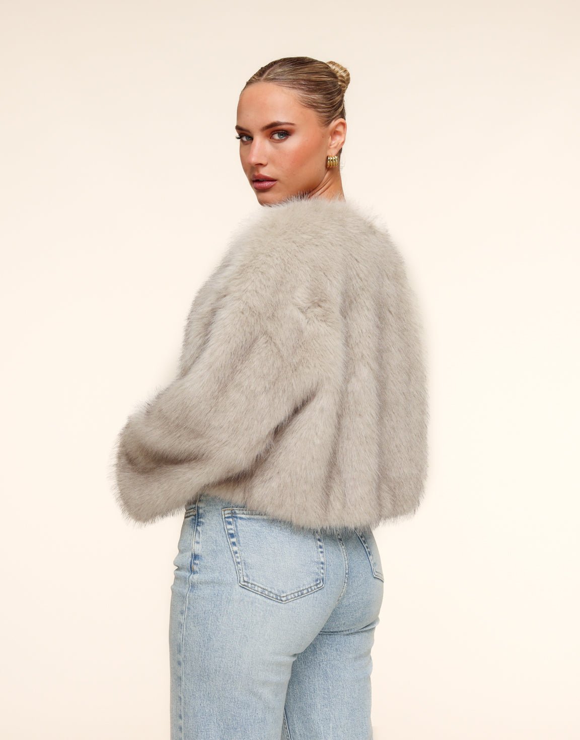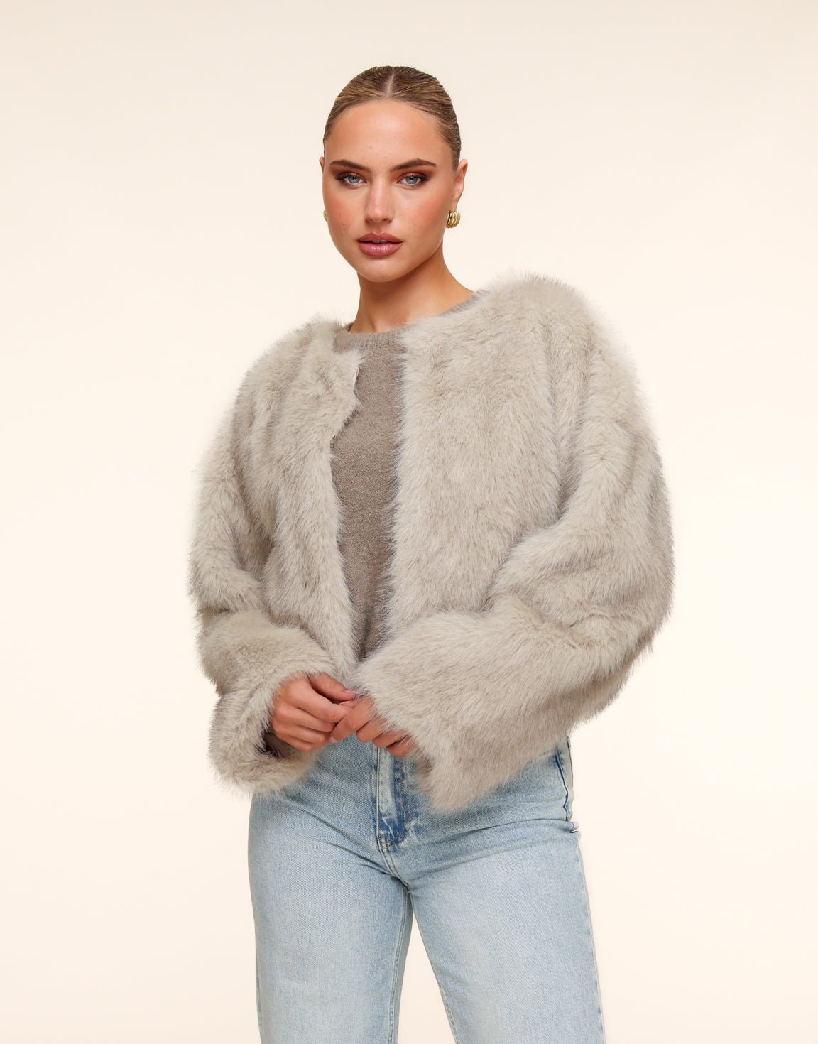 - Details: fluffy coat / long sleeves / double lining / PU leather on the inside / two front pockets / short model