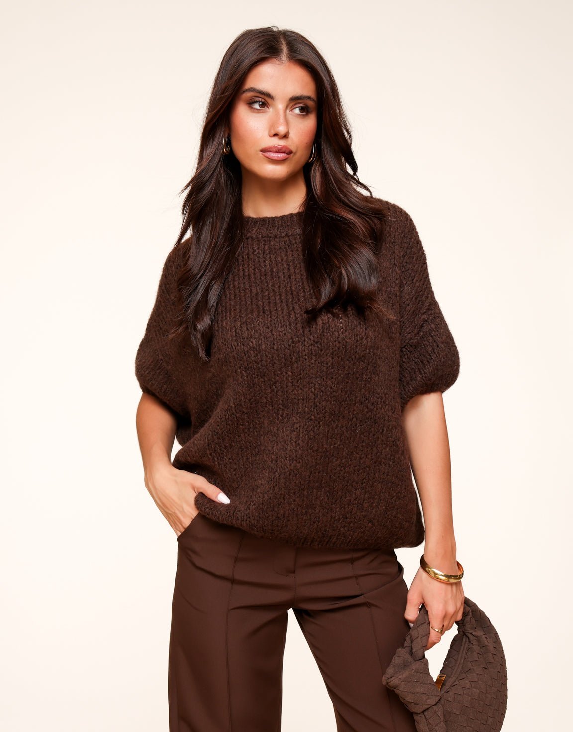 Brown Knitted Wool 3/4 Sleeve - Sweater