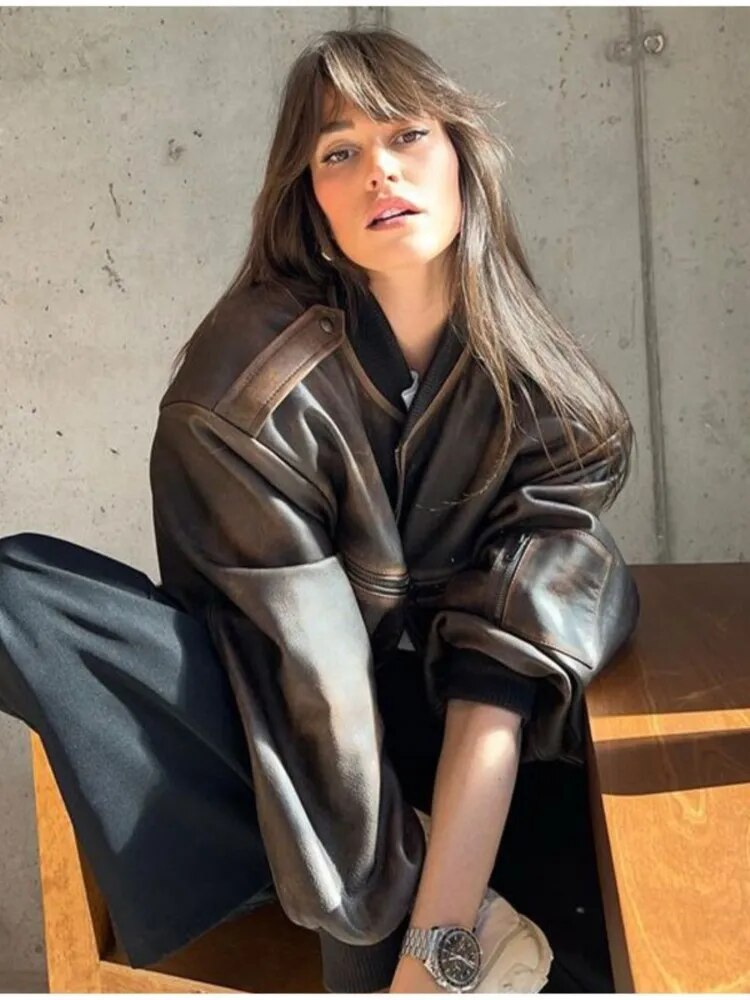 Bold, edgy, and packed with attitude, the Camden Washed Leather Bomber brings a cool, vintage-inspired vibe to your outerwear line-up. Crafted with a distressed leather-look finish, ribbed trims, and a relaxed oversized fit, this jacket nails the balance between rugged and refined. Utility-style sleeve pockets and exposed stitching add an extra dose of street-ready detail.