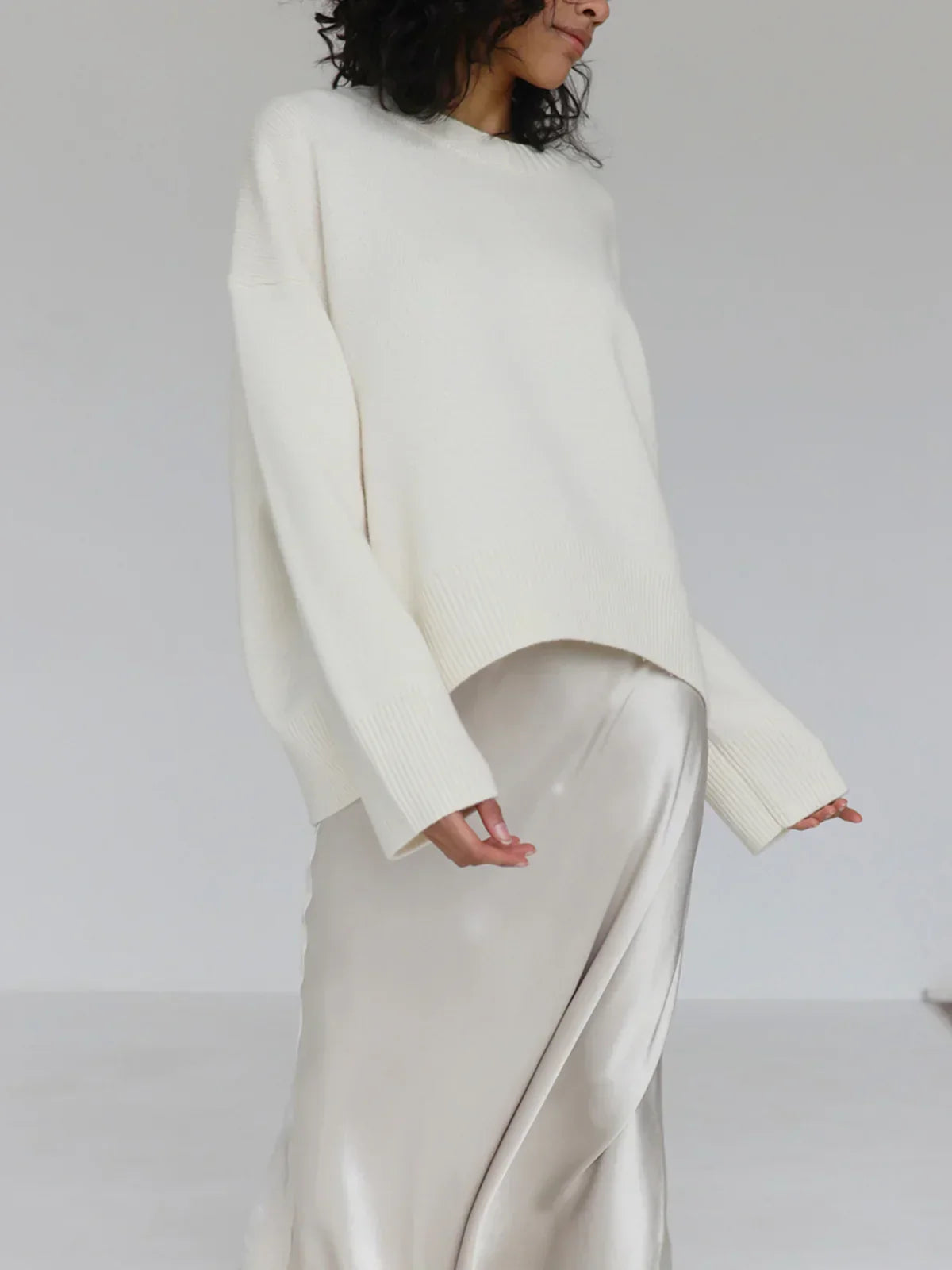 Design: A cozy oversized pullover sweater featuring a soft knit texture, relaxed silhouette, and a classic crew neckline. The effortless design adds warmth and comfort with a chic, laid-back touch.