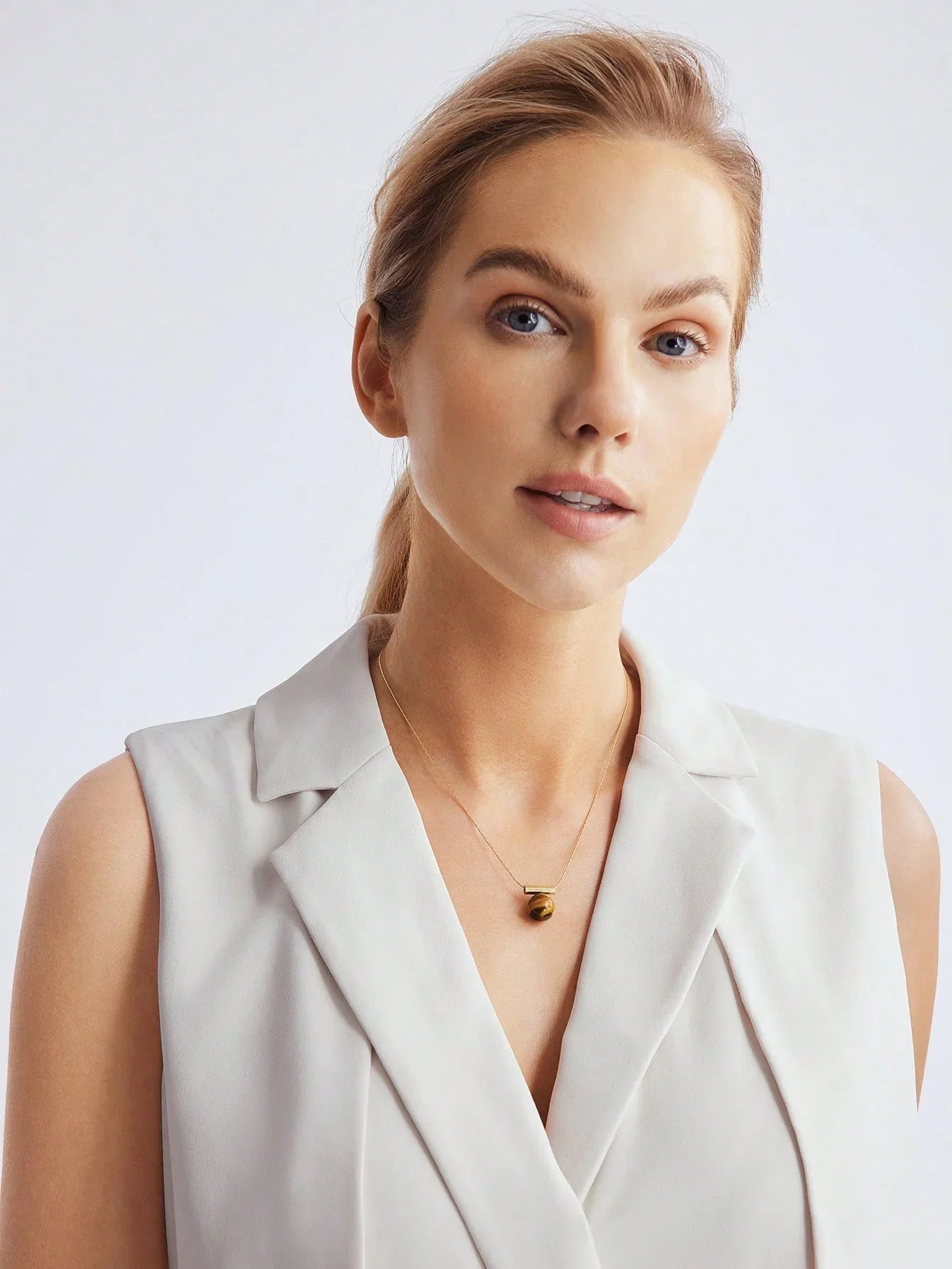 Design: A chic geometric pendant shaped in clean, contemporary lines, the Geometric Tiger Eye Pendant Necklace pairs modern architectural form with timeless gemstone warmth. The faceted Tiger Eye centerpiece is bezel-set within an 18K gold-plated frame, creating a refined silhouette that catches light and adds understated luxury to both casual and polished looks.