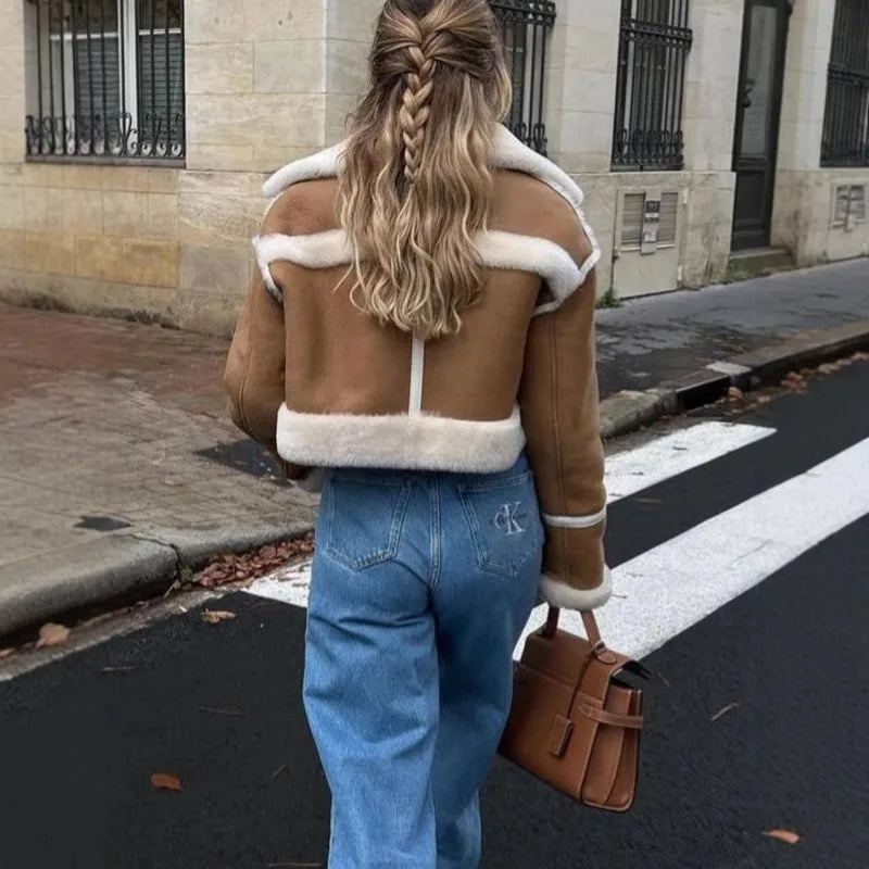 Stay effortlessly chic with the Rita Elegant Coat, featuring plush detailing and a cropped design for modern winter sophistication.