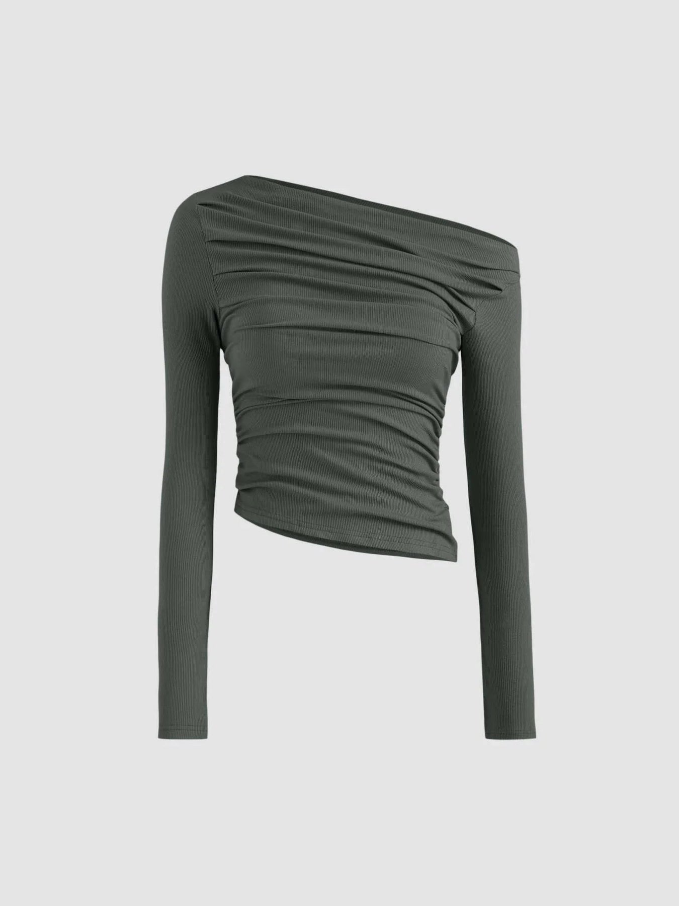 Design: A stylish long sleeve top featuring an asymmetrical neckline, offering a modern and chic appearance.