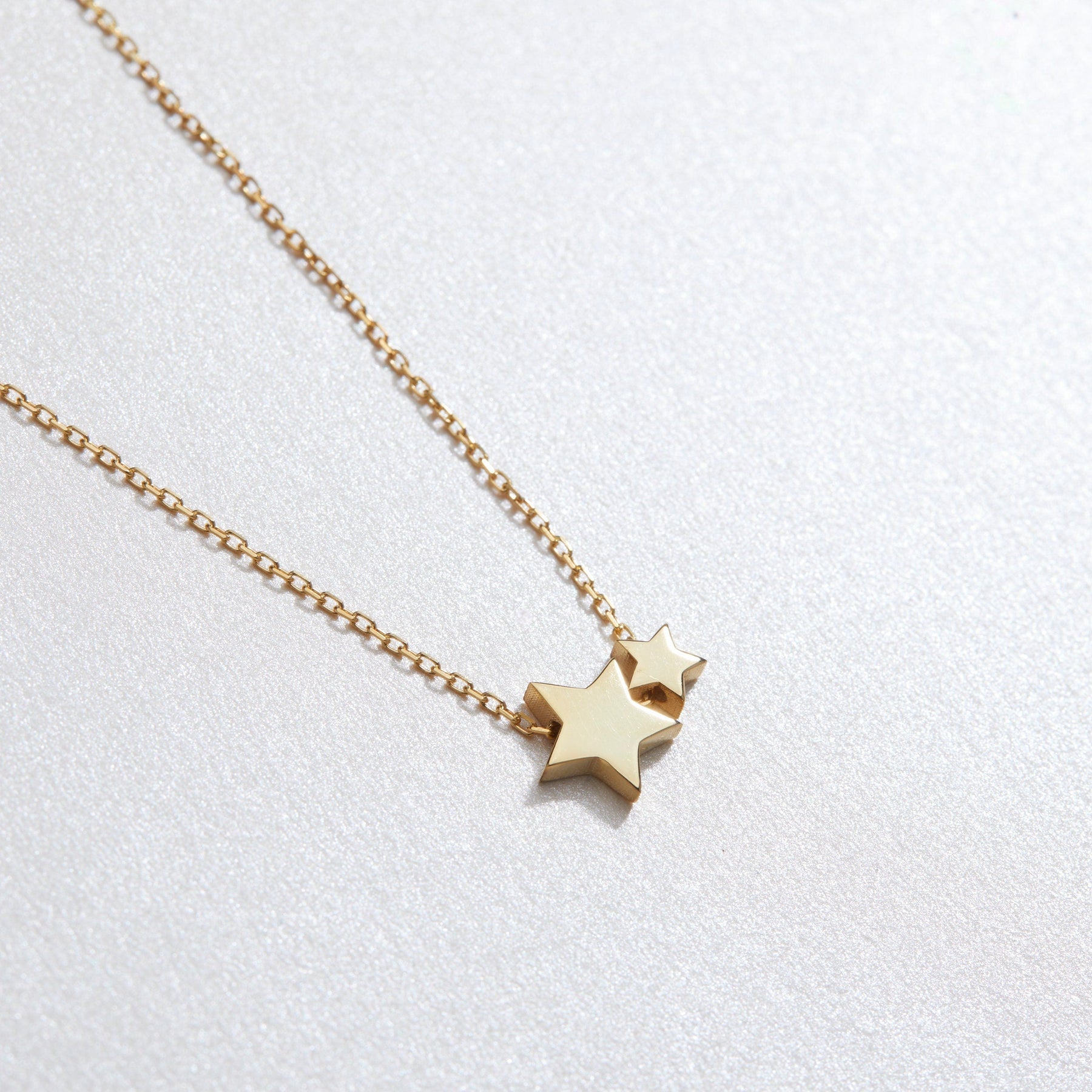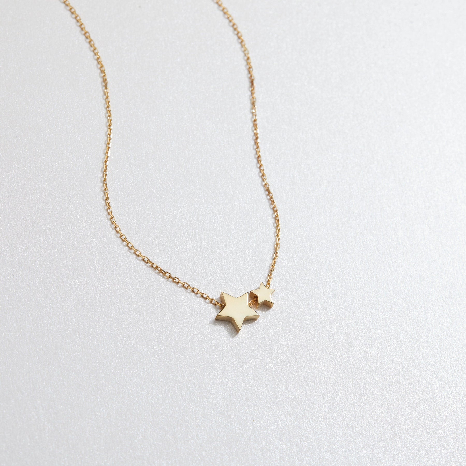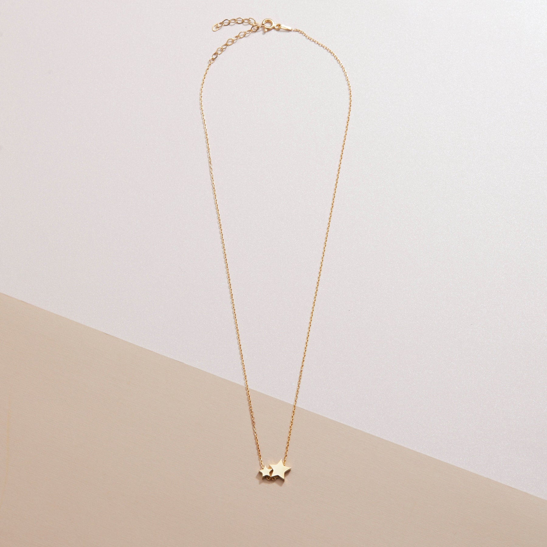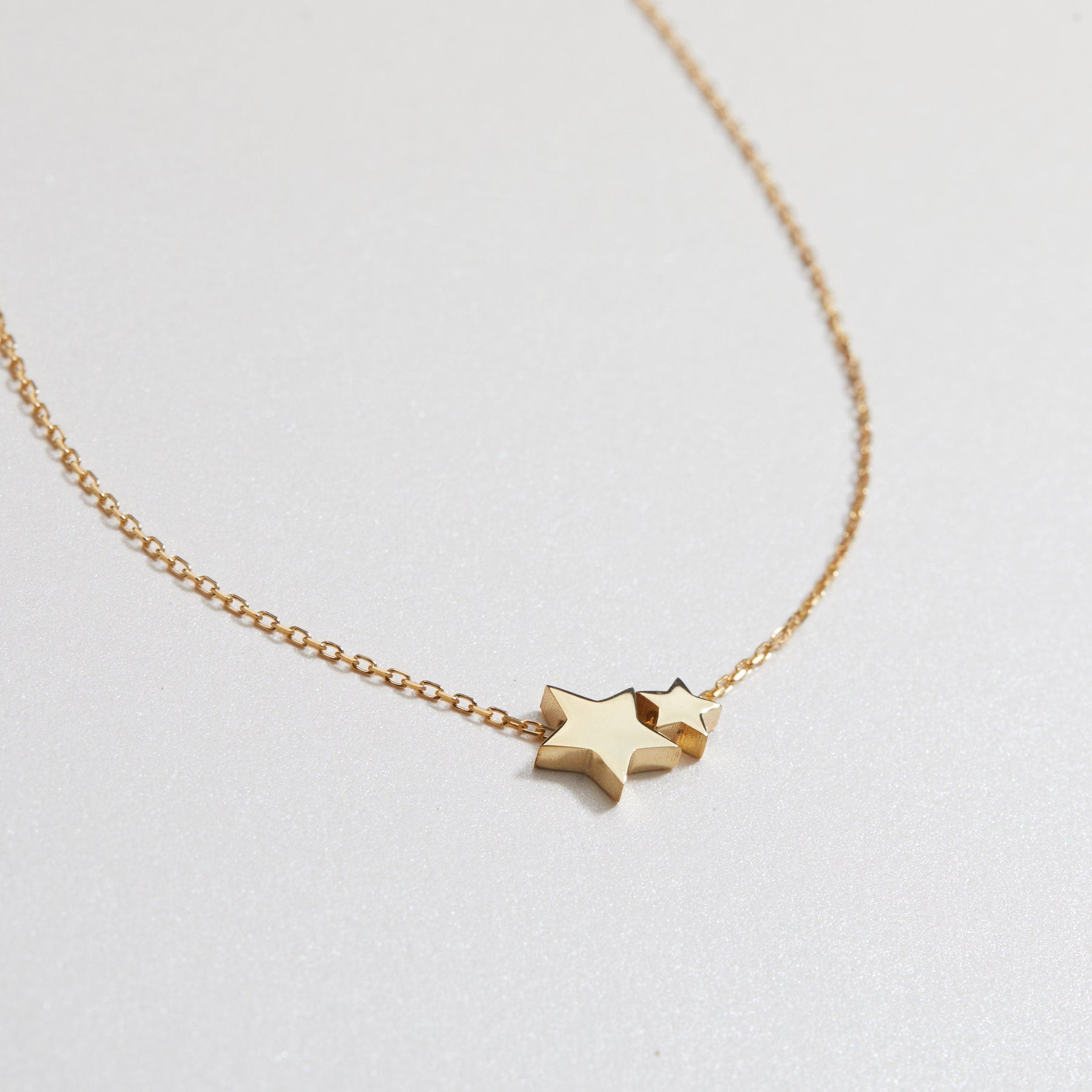Whimsical yet refined, the Stellina Necklace features two polished star charms that rest delicately on a fine gold chain. A graceful nod to celestial beauty, perfect for dreamers and stargazers alike.