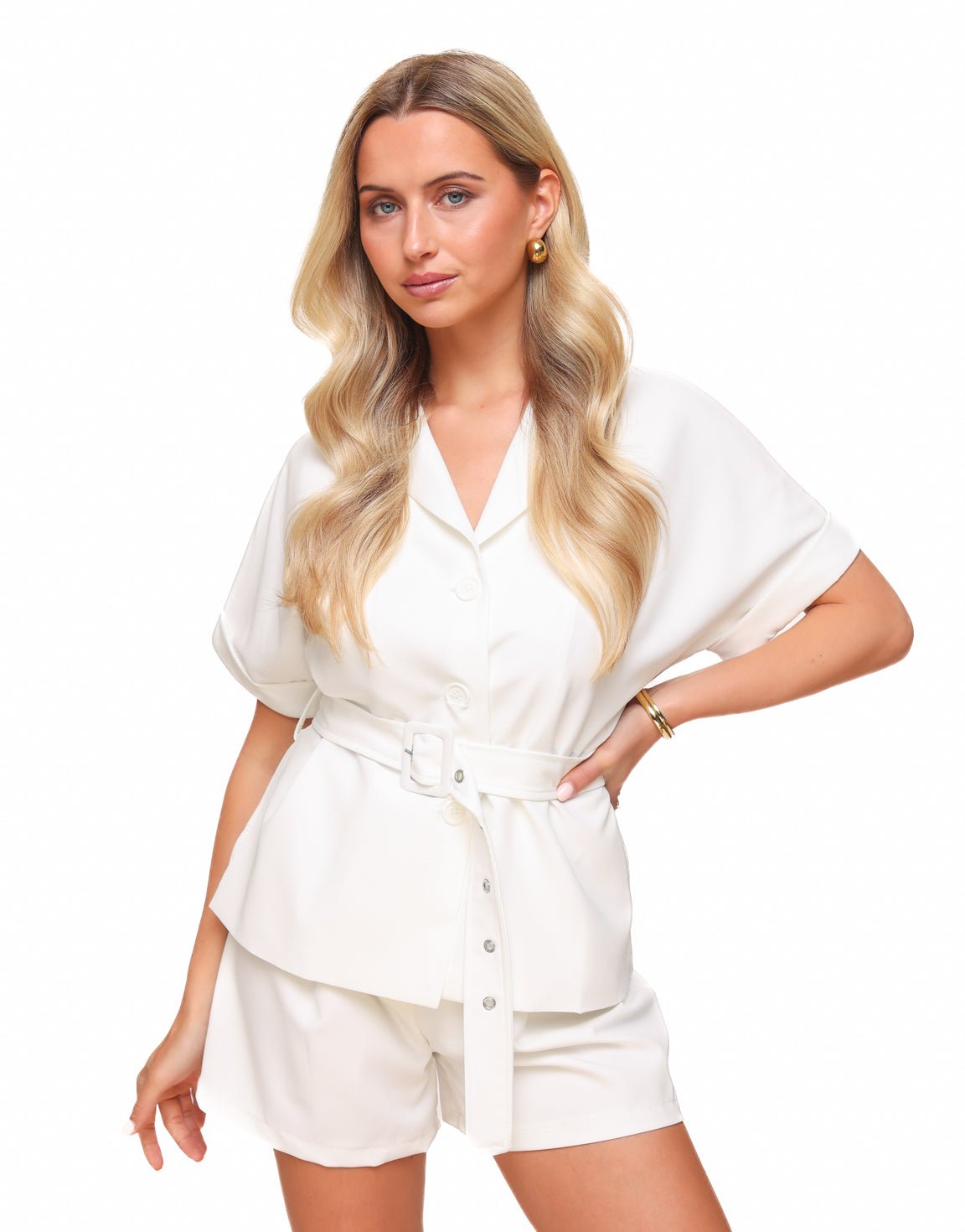 - Details: buttons in the middle / belt is adjustable / rolled-up sleeve detail / collar