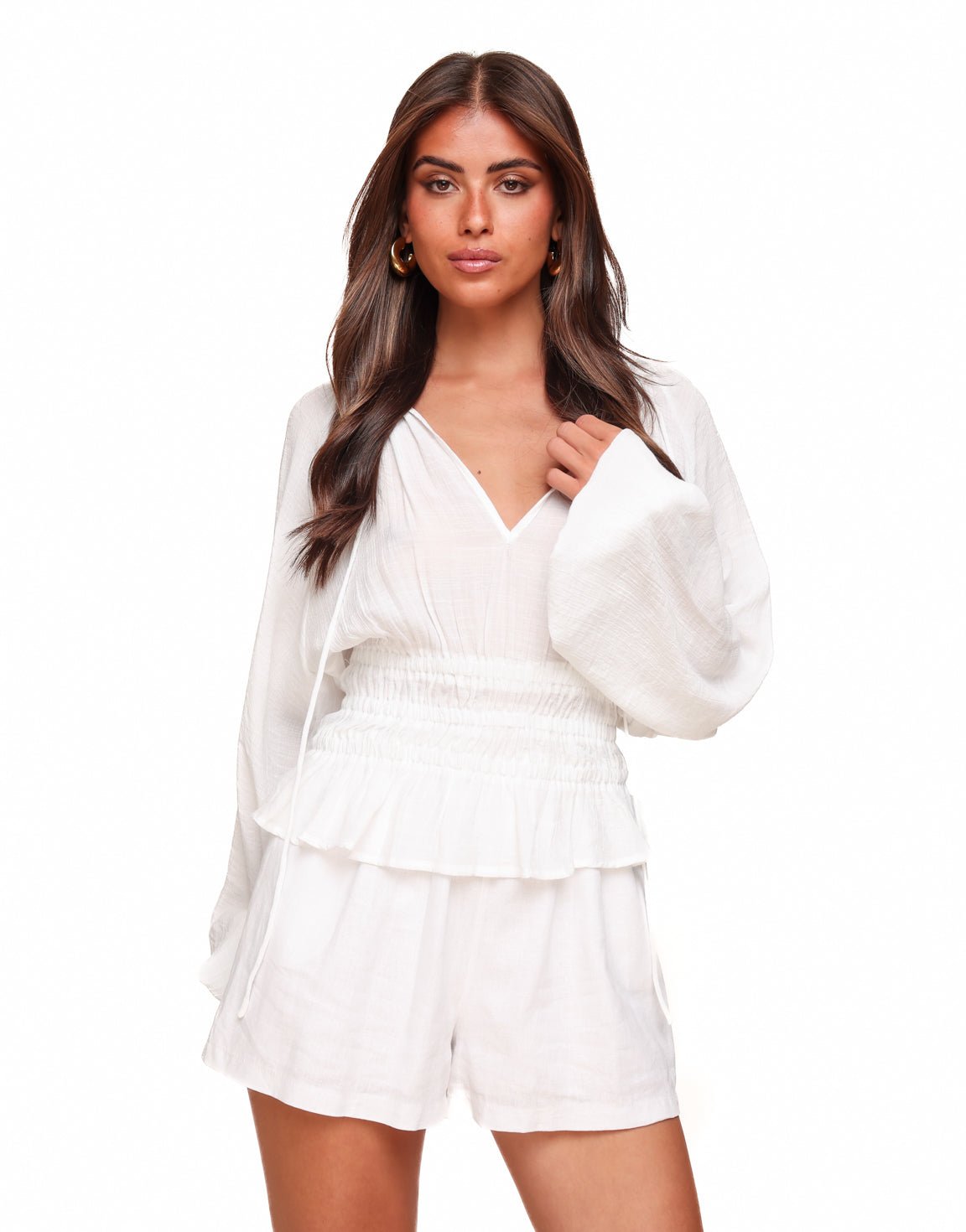 - Details: puff sleeves / smock waist detail / ruffles at the neck / strings at the front at the neck